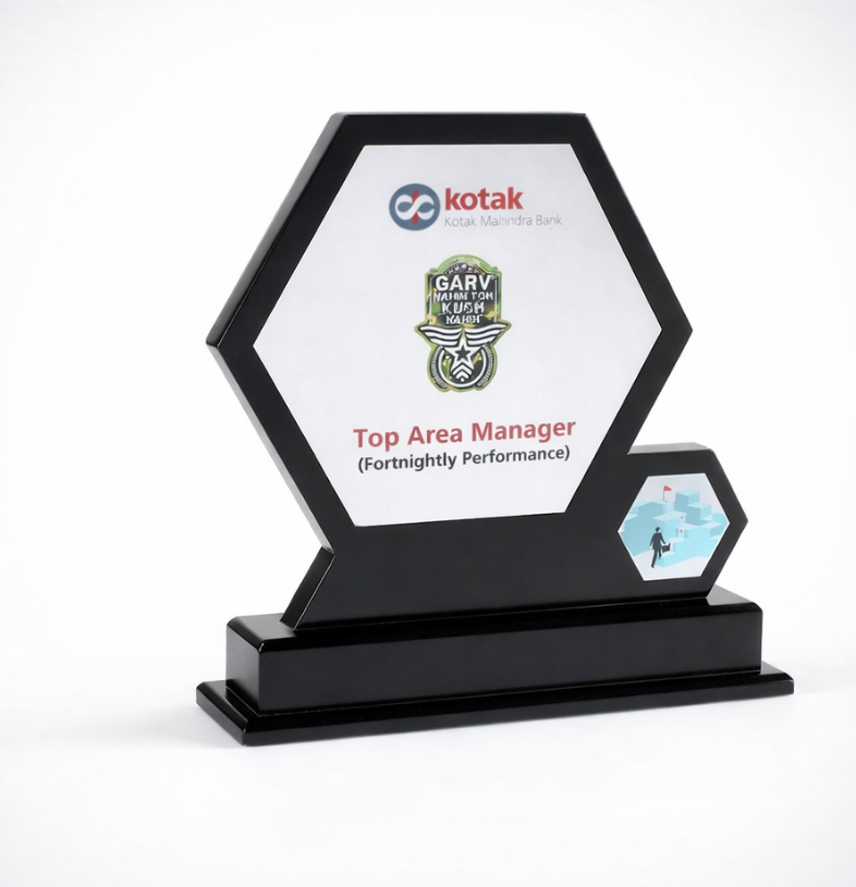 A geometric hexagonal award featuring a clean white face and a smaller accent hexagon. Its structured design represents order and strategic management, ideal for area managers, logistics experts, and regional leadership honors in large organizations.