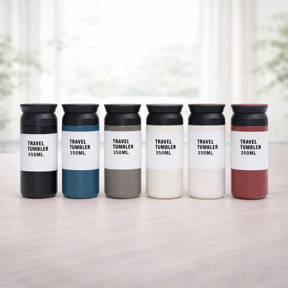 This 350ml travel tumbler features a minimalist flat lid design. Its vacuum-insulated stainless steel body keeps espresso or tea hot, making it a stylish and practical accessory for the modern commuter.
