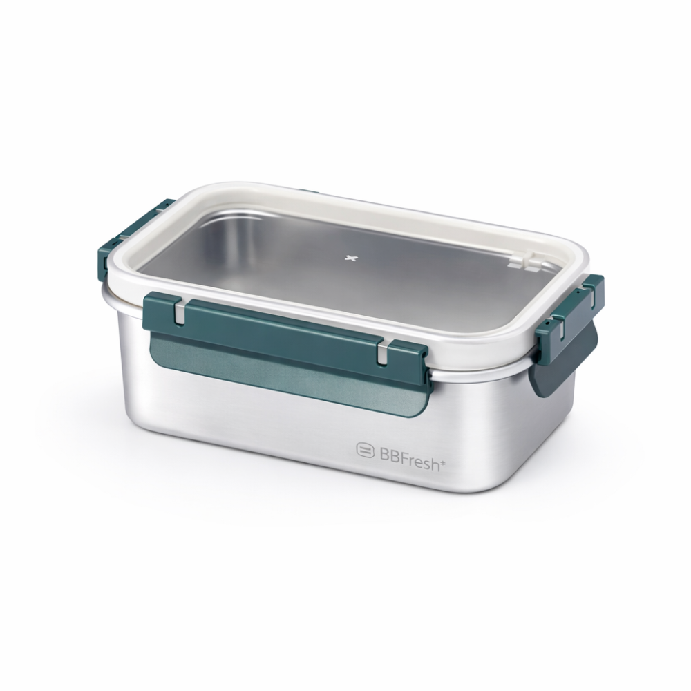 Perfect for daily use, this container is microwave-safe and features four airtight, leak-proof clasps. Its 304 stainless steel body ensures uniform cooling, making it ideal for freezing and storage in various kitchen settings.