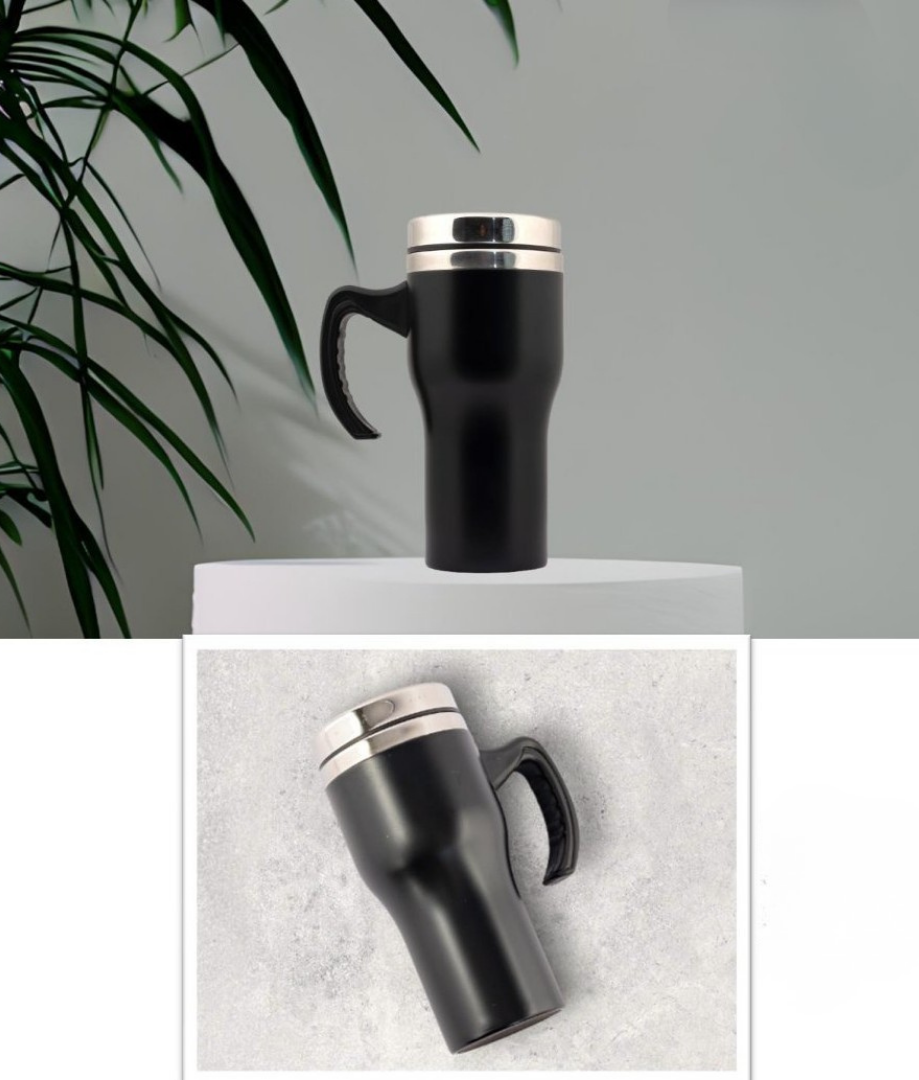 The Smith SS Mug is a 410ml travel-style mug with a handle, perfect for desk or car use. Its stainless steel body is rugged and resistant to impacts. The lid fits securely to minimize heat loss and prevent sloshing during movement.