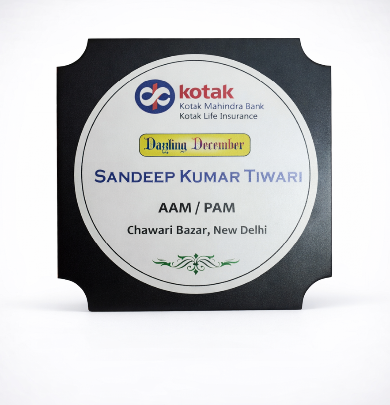 • Material: High-density wood board with a polished metallic crest insert.