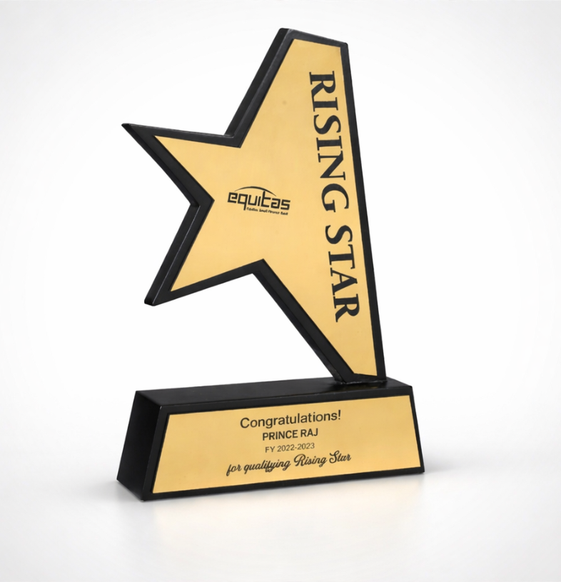 This dynamic star-shaped award features a sharp, angular design that emphasizes upward movement. Made from durable wood with a light finish, it is a perfect memento for recognizing emerging talent and high-potential employees during quarterly town hall meetings.